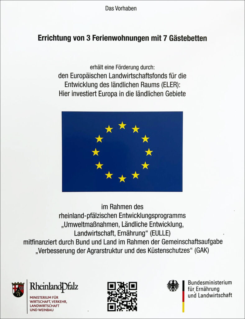 Umweltschonender Steil- und Steilstlagenweinbau einen Ausgleich durch: Den Europäischen Landwirtschaftsfonds für die Entwicklung des ländlichen Raums (ELER): Hier investiert Europa in die ländlichen Gebiete im Rahmen des rheinland-pfälzischen Entwicklungsprogramms „Umweltmaßnahmen, Ländliche Entwicklung, Landwirtschaft, Ernährung“ (EULLE) mitfinanziert durch das Land  Rheinland-Pfalz.